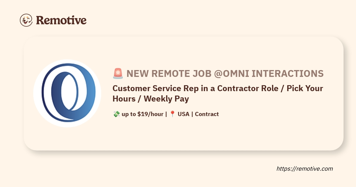 ओमनी विभिन्न प्रकार के उद्योगों में कई ग्राहकों का समर्थन करता है, जिनमें फॉर्च्यून 500 भी शामिल है। ओमनी योग्य स्वतंत्र ठेकेदारों के साथ अनुबंध करना चाहता है जो फोन और ग्राहक सहायता सेवाएं प्रदान करेंगे।
