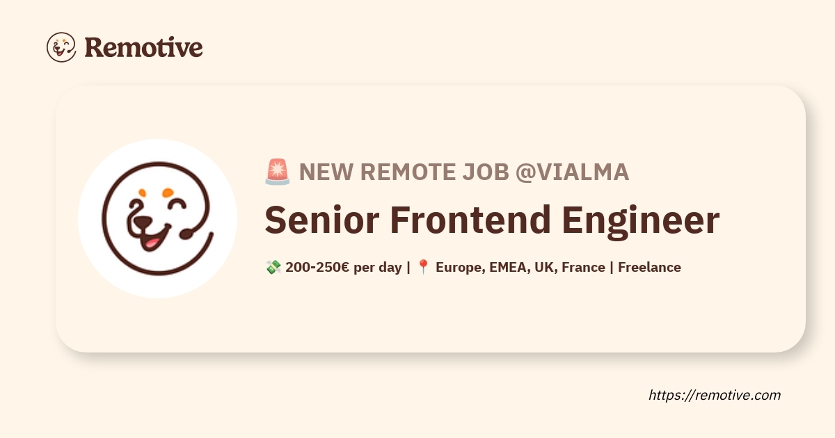 वियाल्मा एक समान अवसर नियोक्ता है। हम विविधता का जश्न मनाते हैं और सभी कर्मचारियों के लिए एक समावेशी वातावरण बनाने के लिए प्रतिबद्ध हैं। यदि आप अपने फ्रंटएंड कौशल को संस्कृति और स्ट्रीमिंग तकनीक के प्रति प्रेम के साथ जोड़ना चाहते हैं, तो यह जगह आपके लिए है। हम आपके उत्तर की प्रतीक्षा में हैं!